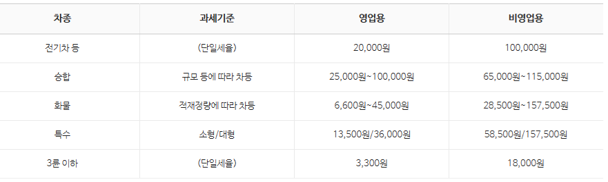 - 승용차 : 배기량 (cc) 기준 차등과세