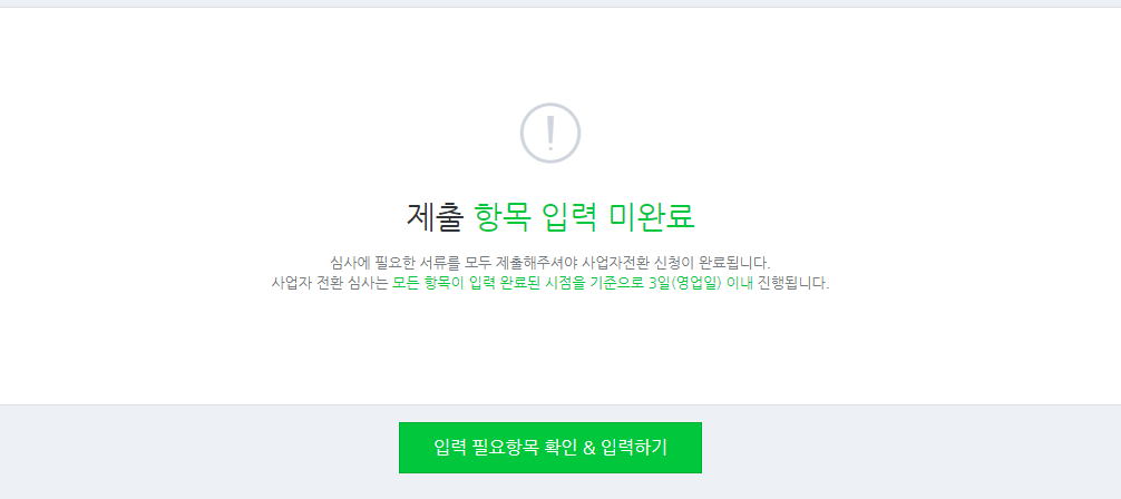 최초 스마트스토어에 개인판매자로 가입 한 후 사업자등록증을 취득했다면 판매자유형을 사업자로 전환 할 수 있습니다. 필수 서류를 구비하여 사업자전환메뉴에서 신청하면 되며 접수 후 3영업일 이내에 심사 결과를 확인 할 수 있습니다.