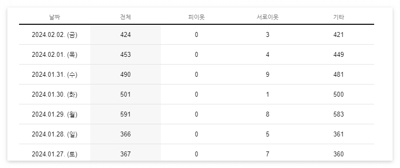 2024년 1월 5주차 (1월 28일~2월3일) 블로그 운영 내용을 복기 해 보려고 해요.